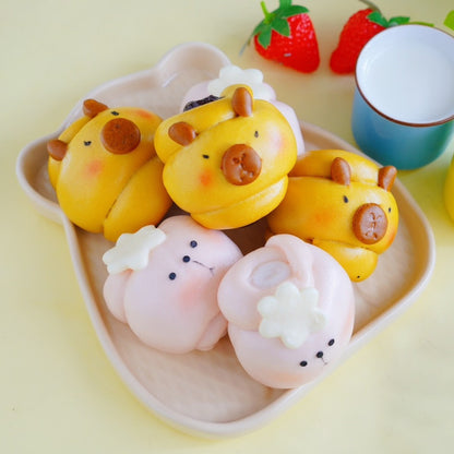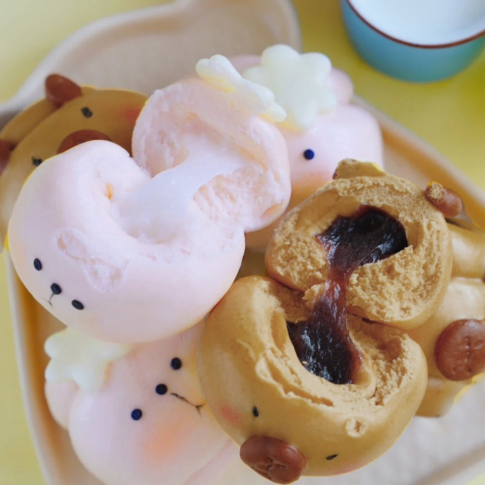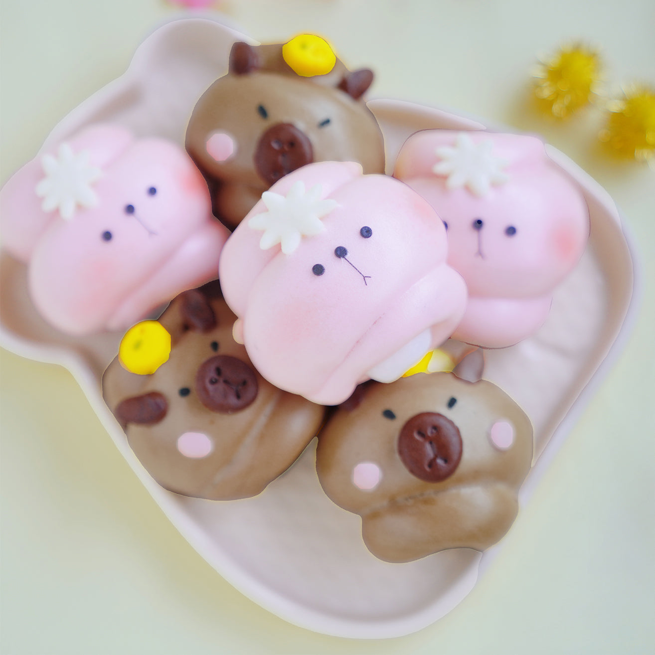 🌿 成分:小麥粉、鮮乳、椰子油、糖、酵母、植物性食用色素(仙人掌粉、紅麴粉、紅蘿蔔粉、菠菜粉、竹炭粉)、原味麻糬(麥芽糖、羥丙基二淀粉磷酸酯、短粒米粉、木薯澱粉、馬鈴薯澱粉、香料、棕櫚油、糯米粉、糖、二氧化鈦)、黑糖麻糬(麥芽糖、羥丙基二淀粉磷酸酯、短粒米粉、木薯澱粉、馬鈴薯澱粉、黑糖、香料、棕櫚油、糯米粉、可可粉、咖啡粉) [3 羊駝饅頭 - 原味麻糬。 3 卡皮巴拉饅頭 - 黑糖麻糬]